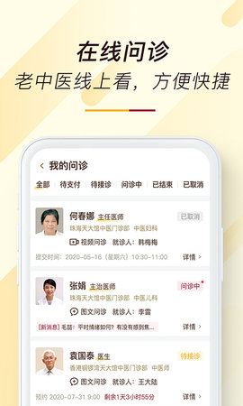 1、平台汇聚了众多中医专家,根据自己的需求选择合适的医生进行咨询。