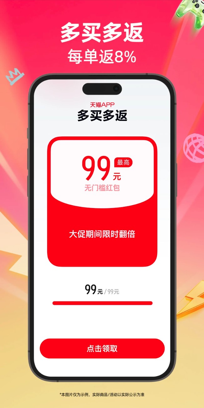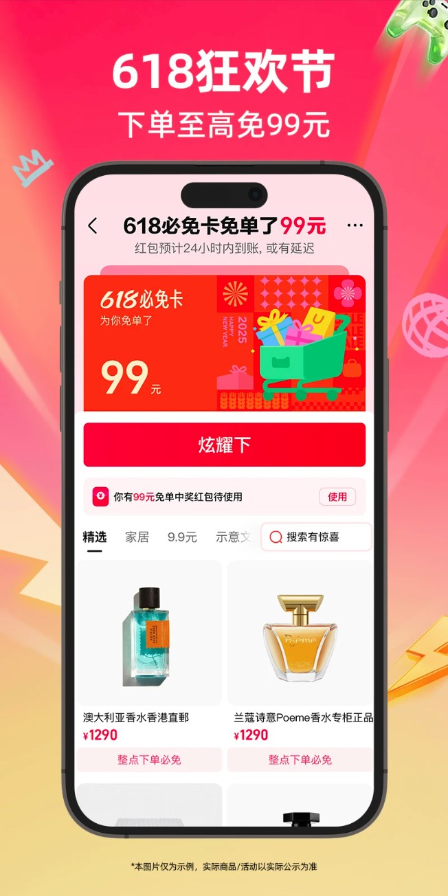 活动期间,可进入「618专区」领取免单卡,下单时满足指定条件,即有机会获得最高99元的返现奖励。