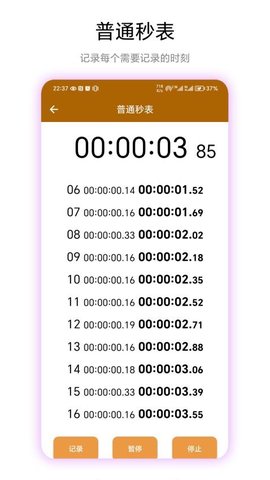 1、普通秒表模式适合日常生活中的各种计时需求,简单易用,方便快捷。