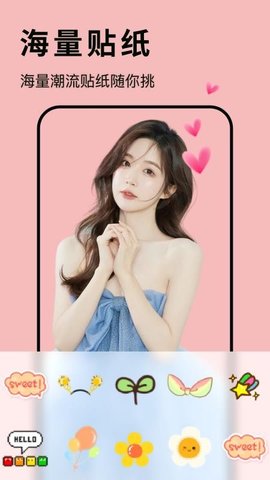 2、贴纸库中包含了各式各样的可爱贴纸,根据自己的创意自由搭配,增添照片的趣味元素。