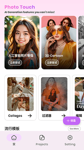 Photo Touch是一款效果自然的AI照片增强器,堪称全能型AI照片编辑器,集合了照片滤镜、特效、相框、拼贴制作及图像增强等丰富功能,支持快速添加滤镜、贴纸、文本并调整特效,操作简单便捷,通过多样编辑工具轻松优化照片,让每一张收藏的记忆都变得更加清晰精美、珍贵难忘,满足用户对照片编辑的多元想象与需求。