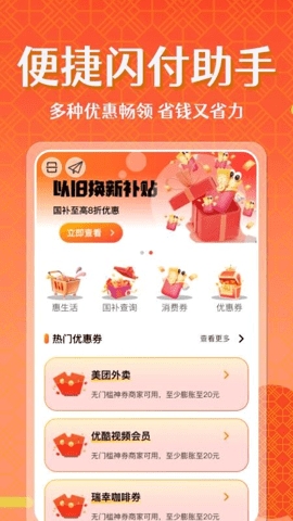 1、整合多种外卖优惠券和丰富的国补信息,使得用户能够节省更多的经济成本,享受实惠。