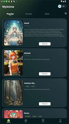 2、与多种类型的AI角色进行互动,丰富的角色选择使得每次聊天都充满新鲜感。