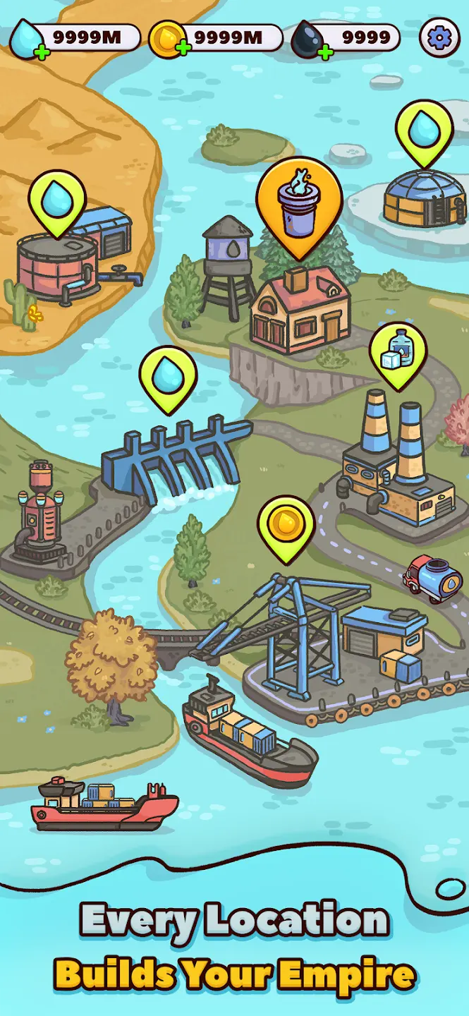 水务大亨是一款经济策略放置类游戏,玩家将从零开始,逐步建立起一家全球性的水资源企业,游戏中你将体验到从小井起步,逐渐发展为大型净水厂的过程,管理管道、水泵和灌装生产线的挑战,尽情享受这一切带来的乐趣,成为真正的水务大亨。