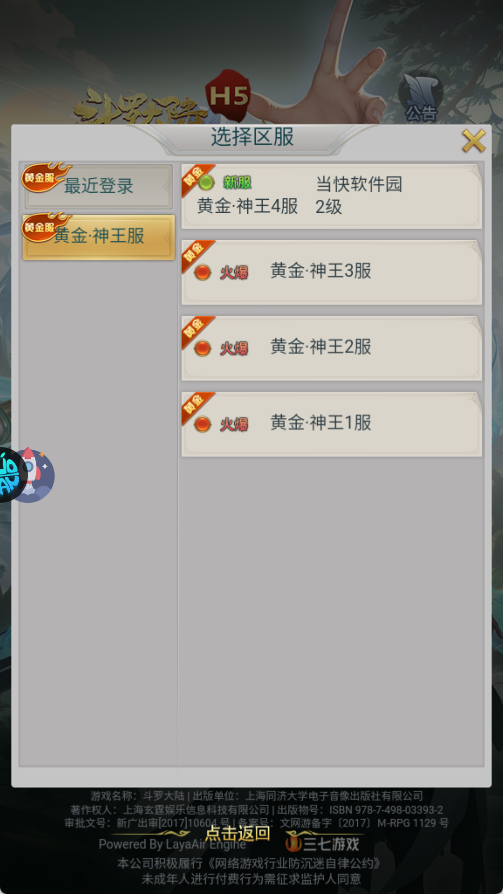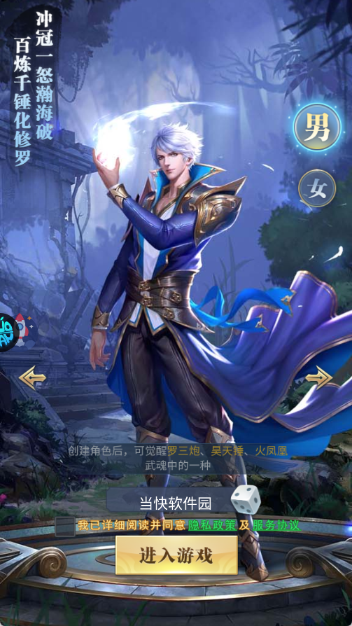 1、下载并安装斗罗大陆极速打金版,进入后根据自身需求选择合适的区服,然后点击创建角色。