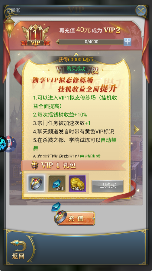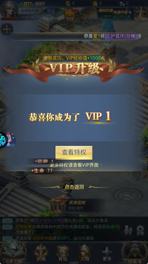 2、作为新玩家,刚进入游戏系统会自动VIP特权。
