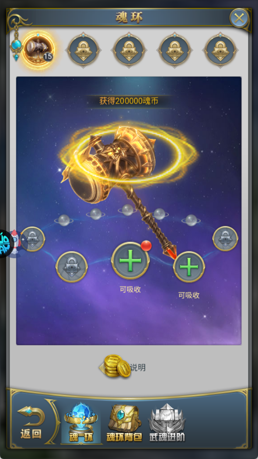 4、选择好武魂后,点击进入即可激活,随后便能逐步解锁和吸收魂技,魂技是角色的核心战斗技能,它们能极大地提升战斗力。