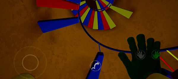 3、正式进入游戏后,玩家需要操控波比,找到自己缺失的玩偶手,熟悉左右两侧的虚拟操控按键。