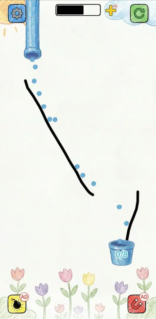 2、使用手指在屏幕上绘制一条线,确保线条能够引导小球顺利到达目标杯子,注意线条的形状和倾斜角度。