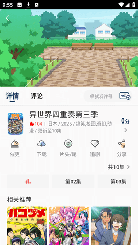 3、点击选择某一部动漫后,查看该动漫的详细信息,包括剧集列表和更新动态。