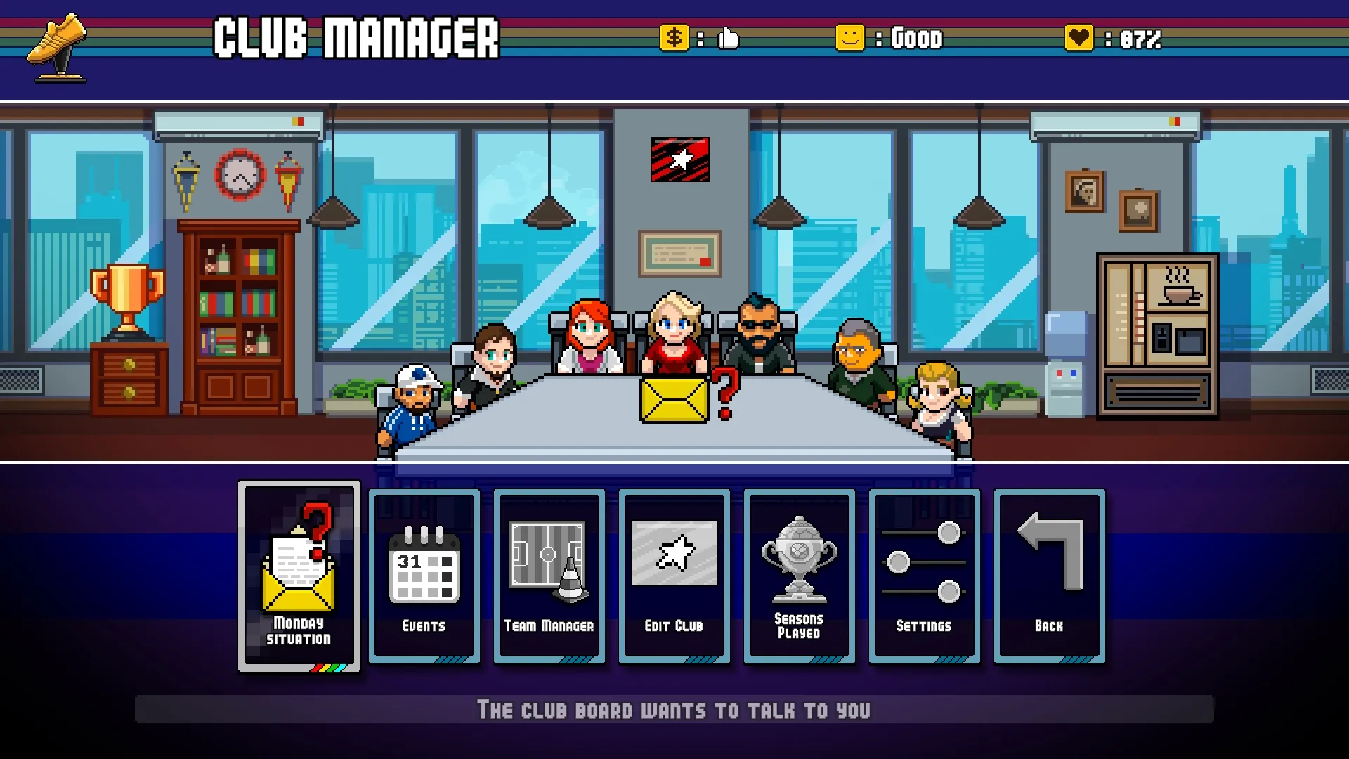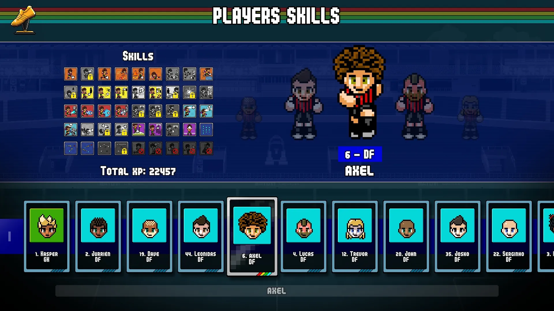 1、像素世界杯的复古艺术风格让人怀念,游戏中的每一个角色和场景都带有浓厚的80年代街机风情。