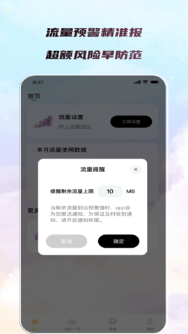 3、流量提醒功能确保在流量即将用尽时,软件会提前发出提醒,帮助用户及时做出应对措施。