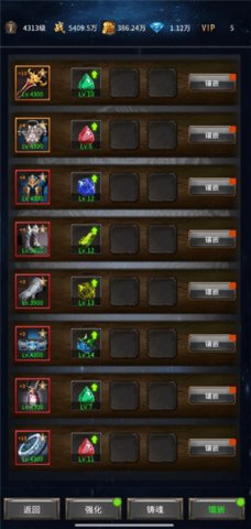 5、随着等级的提升,玩家需要对手中的武器防具进行强化、灵魂绑定及宝石镶嵌,这将显著增加角色的属性加成效果。