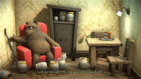 5、成功将桌子推到合适的位置后,让小熊品尝它渴望已久的蛋糕,享受这一成就感。