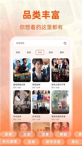 2、短剧的类型非常丰富,涵盖了都市霸总、现言古言、玄幻武侠等多种题材,适合各种兴趣的用户。