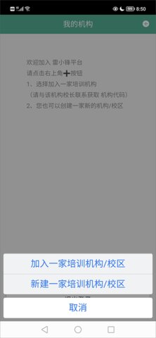 2、在弹出的选项中,选择加入或建立一家培训机构,进入机构信息录入界面。