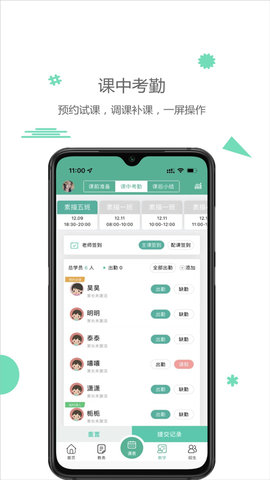 4、管理任务模块包括机构课表、老师管理和学员管理,全面提升机构的运营能力。