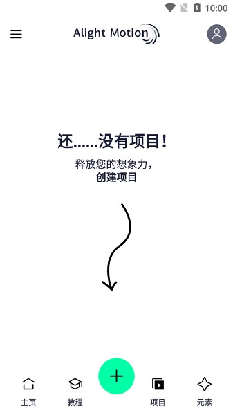 1、在本站下载并打开alight motion中文版,进入首页,点击右下角的“加号”,创建一个项目;;