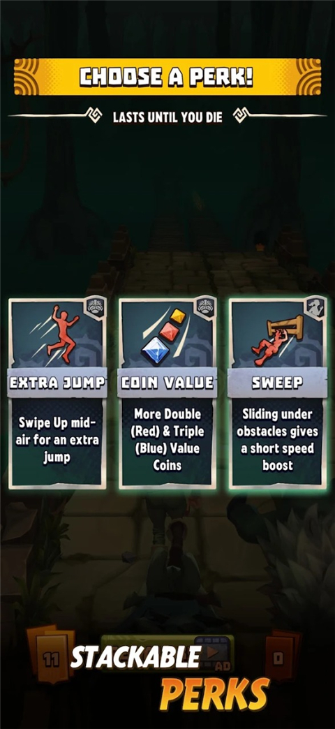 2、通过叠加强力技能,玩家能够打造终极跑酷体验,最大限度地提升速度和金币收集能力。