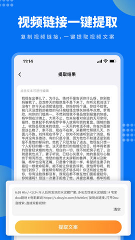 2、通过链接一键提取文案的操作,轻松获取视频中的文字,省去繁琐的步骤。
