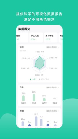 1、课程报告精准详实,记录每个学生的学习进展,教师可根据报告内容为学生提供个性化的改进建议,促进其全面发展。