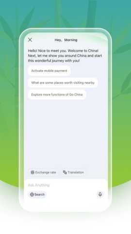 Nihao China(你好中国)是由中国银联股份有限公司推出的一款为境外游客来华旅行打造的一站式智能服务软件,聚焦外国友人在华出行的核心需求,整合支付、翻译、导航、文旅资讯等关键服务,帮助用户轻松实现扫码支付、语言沟通、行程规划与文化体验,真正做到“趣味畅行全国,无忧出行”。