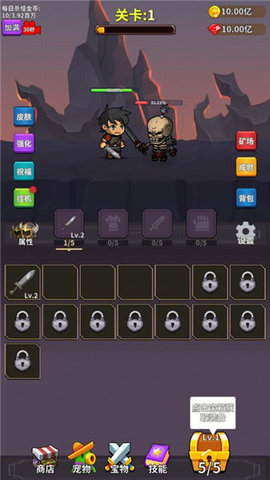 1、首先需要关注挂机功能,提升挂机等级可以提高宝箱等级上限,初始宝箱等级为1级,建议尽早升级。