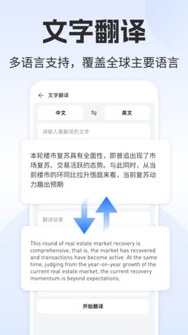 4、如需翻译,选择翻译选项,将文本内容输入后,选择目标语言,系统会自动进行翻译,用户可对翻译结果进行编辑。