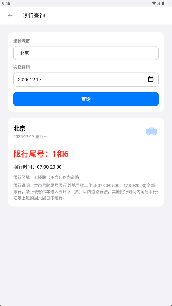 车辆限行违章查询 V1.0.0 安卓版