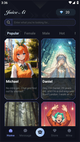 1、用户需要打开Juice AI应用并进入主界面,选择合适的AI角色进行互动。