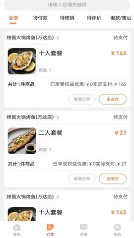 3、在下单成功后,进入订单页面,查看各类历史订单信息,方便了解消费情况和订单状态。