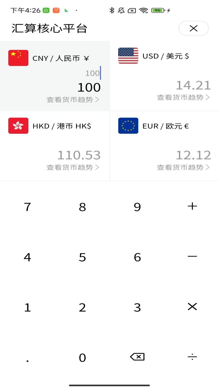 用户只需在汇算核心平台输入想要转换的金额和目标货币,系统将自动计算出相应的汇率结果,操作简单便捷。