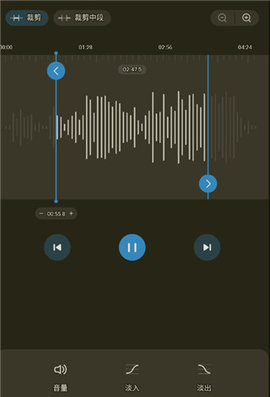 3、选择音频后,使用剪裁工具标记想要保留的音频片段,并通过调整滑块来设置音频的开始和结束位置。