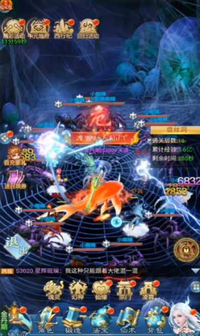 3、挂机系统与盘丝洞副本的设计,让玩家在忙碌之余也能不断获取收益,提升游戏的可玩性。