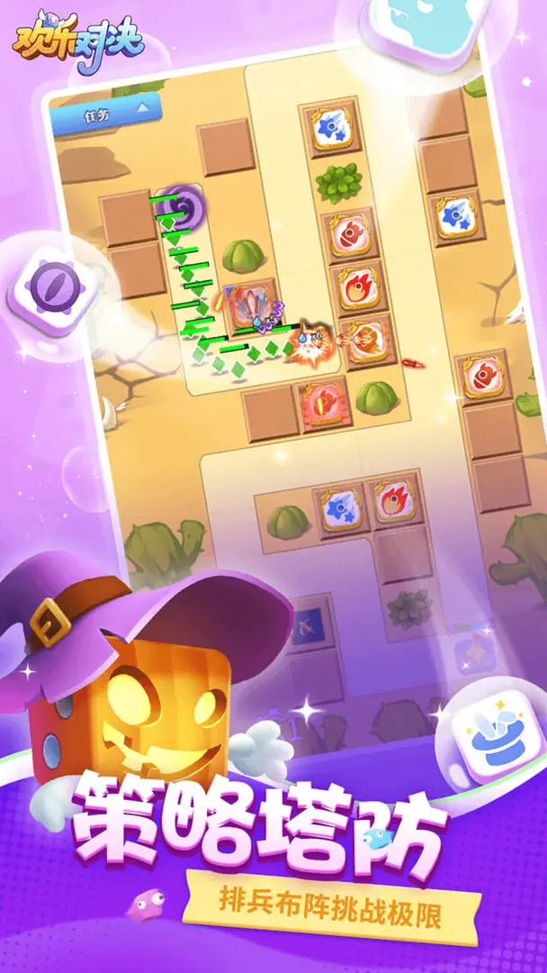 欢乐对决QQ版是一款以Q版风格呈现的休闲竞技塔防手游,游戏的设计理念巧妙结合了放置合成与策略对战的核心玩法,带给玩家们耳目一新的体验。每局游戏时间控制在3分钟之内,十分适合利用碎片时间进行挑战,玩家不仅可以选择单人模式,还可以与朋友进行双人协作,甚至参与PVP排位赛,增加了游戏的多样性。游戏每天提供十连抽的福利,玩家在享受游戏的也能收获丰厚的奖励,轻松解压的策略对战体验令人难以抗拒。
