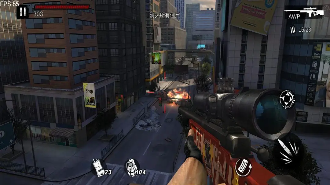 3、按住开火按钮进行射击,确保在对抗僵尸时保持持续的火力输出。点击装填弹药的按钮,可以方便地补充弹药,避免在关键时刻出现空枪的情况。
