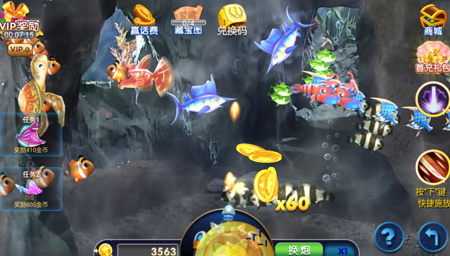 2、在捕捞过程中,观察鱼群的移动轨迹和速度,提前瞄准鱼将经过的位置,提高命中率,尤其是对于速度较快的鱼。