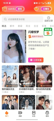 2、进入软件后,浏览首页推荐的短剧,也可以通过搜索功能寻找特定的剧集,便于快速定位想观看的内容。