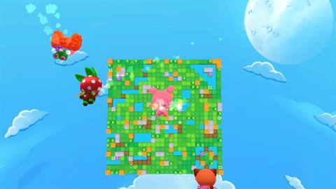 1、玩家在地图中操控萌系角色进行移动,精准投掷炸弹以封锁敌方路线,需要灵活规避敌方炸弹的攻击,通过走位与策略取胜。