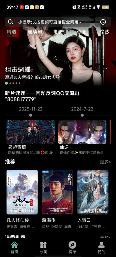 追番达人新版本是一款聚合了丰富影视资源的应用,涵盖了电影、电视剧、综艺、动漫以及热门短剧,给大家带来便捷的观影体验。软件的智能关键词检索功能使得用户能够快速找到所需内容,所有资源均可轻松下载,方便随时观看。强大的投屏交互技术能让手机中的精彩内容瞬间传输到电视上,提升了家庭观影的乐趣,成为居家休闲时光的理想伴侣。