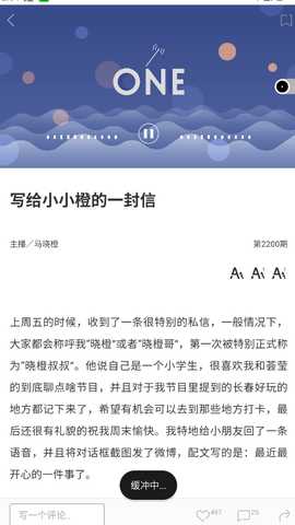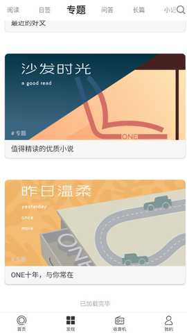 韩寒一个one是一款由著名作家韩寒创立的优质阅读平台,给大家带来丰富的文艺内容。用户能够轻松访问到各种优质文章,涵盖了短篇小说、散文、随笔等多种文体,适合喜欢文艺作品的读者。软件不仅提供了便捷的阅读体验,还具备摘抄和互动的功能,让用户在享受阅读的能够与其他读者进行交流,分享自己的观点。