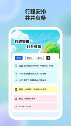 1、使用者可以依据假期长度与个人偏好,在软件内创建并管理多个不同的旅行计划,对每一天的游览项目与交通衔接进行预先编排。