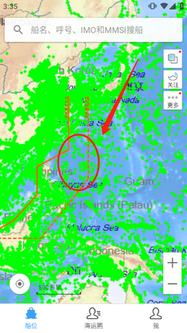 打开船讯网 App,在地图上找到你想查看船舶信息的海域,并通过双指缩放或“+”号按钮放大地图。