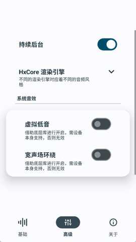 HubeRSoundX是一款面向Android 12及以上版本系统的音频增强工具,其运作机制绕过了对设备高级权限的依赖,直接在系统音频处理层面进行干预。整合了自研的HxCore曲线算法与Android官方的DynamicsProcessing接口,在常规的十段均衡调节之外,构建了一个额外的音频渲染层,主要作用于改善各类输出设备在低频区域的动态响应以及整体声音的清晰度。