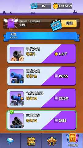 3、游戏提供了从基础型号到传说级别的多种大炮外观,每一种都拥有独特的喷射特效与视觉表现。