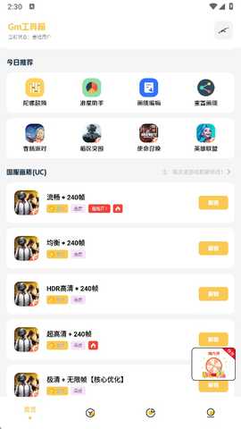 1、启动Gm工具箱后,在首页的游戏列表区域找到并点击你需要优化的游戏图标,进入该游戏的详细参数设置面板。