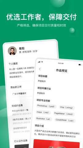 3、所有发布的企业项目需求都会经过平台运营人员的审核,对工作者的技能资质也建立了周期性的复审机制。
