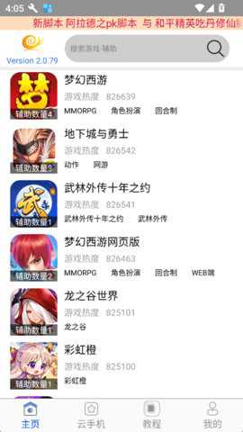 1、启动蜗牛助手应用后,在主界面的搜索栏中输入目标游戏的名称,或在下方提供的游戏列表中进行浏览和选择,以定位到对应的辅助功能集合页面。