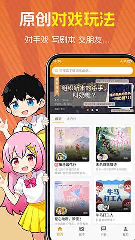 1、首次打开萌语应用,会看到以剧本库和社区动态为主的首页,屏幕下方有清晰的导航栏。
