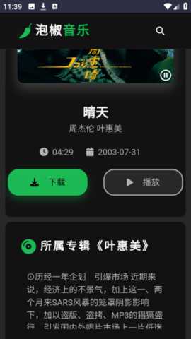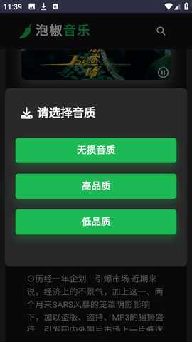 泡椒音乐是一款整合了多个在线音乐平台资源的免费播放工具,用户无需注册或付费就能直接搜索并收听各类曲目,软件在曲库的丰富程度上有着不错的表现,涵盖了从流行音乐到经典老歌的多种风格,允许用户根据网络条件或个人偏好选择不同的音质规格,包括标准格式与无损格式的切换,在播放过程中还能将喜欢的歌曲保存至本地,方便在离线环境下继续欣赏。